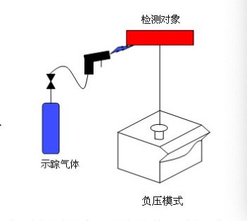 负压法检漏是将被检件接到检漏仪的检测口,用喷枪连续向可疑的漏孔喷射示踪气体,示踪气体通过漏孔进入检漏仪并被检测。一般电子器件的外壳、高压开关管、氧化锌、避雷器等都应采用这种方法检漏。