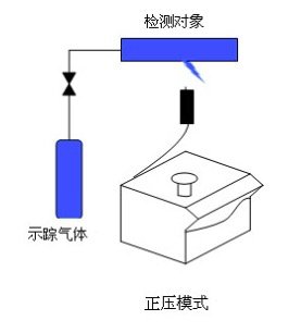 正压法检漏与负压法检漏相反,吸枪接在检漏仪的检测口,而被检件充入规定压力的示踪气体,漏孔泄漏出来氦气被吸枪吸入检漏仪被检测。大型容器或内部放气管量很大的容器做负压检漏很不经济,而且检漏速度慢,一般采取正压检漏。